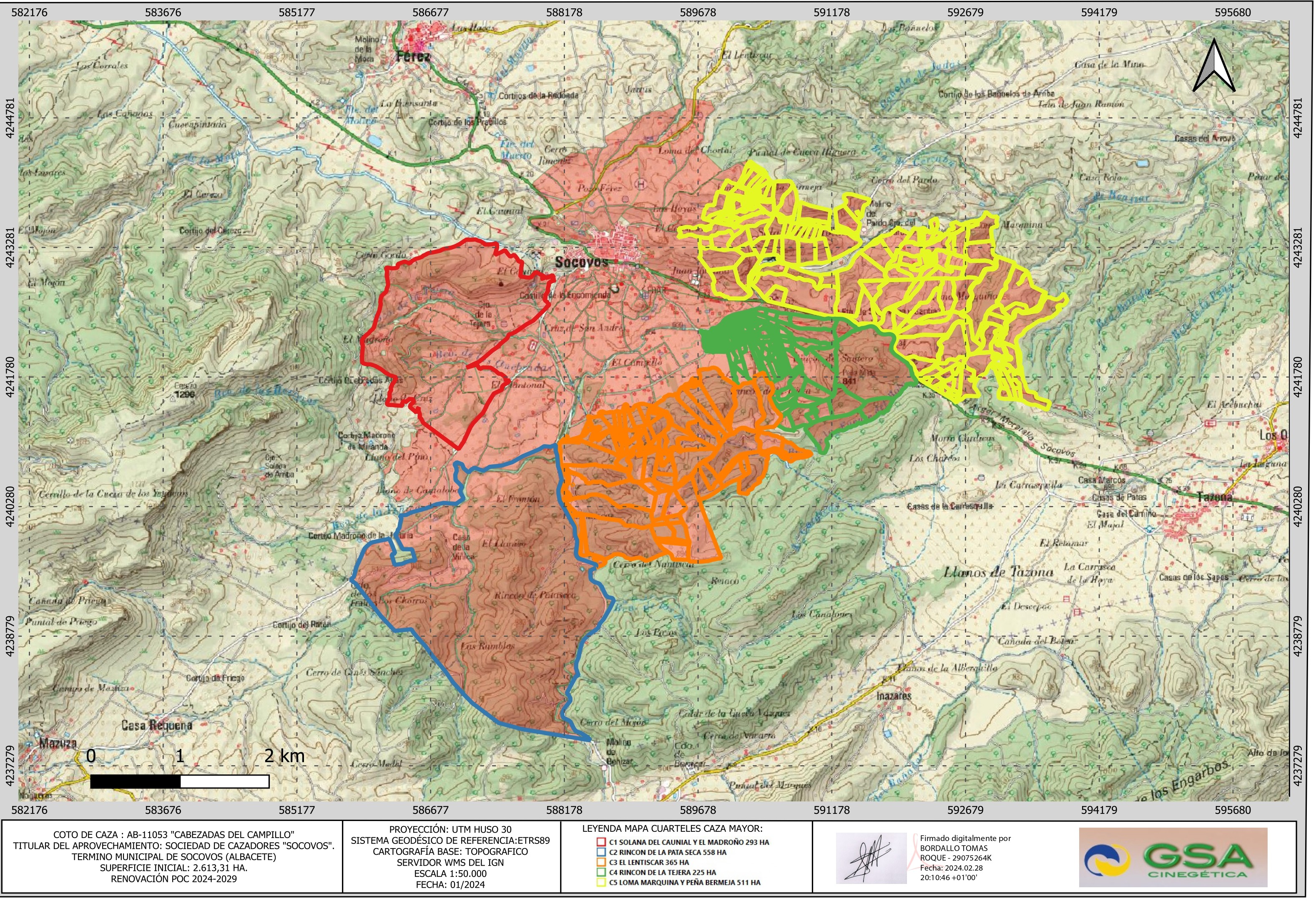 Se informa para precaución de todos, que en las siguientes fechas se tiene previsto celebrar Caza en mano de jabalí en el término de Socovos, en el coto denominado "Cabezadas del Campillo". Adjuntamos mapa