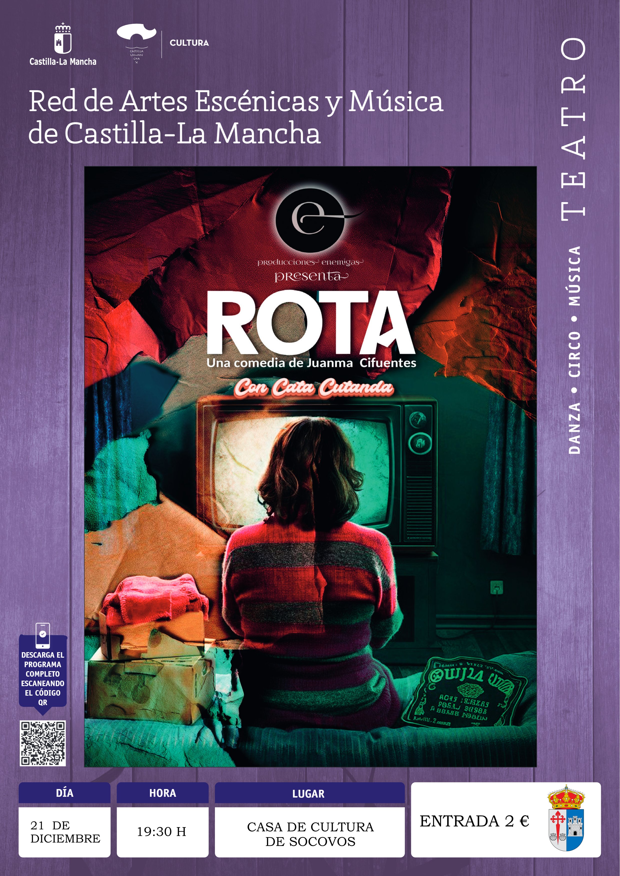 Hoy domingo, día 21 de Diciembre, y dentro de la programación de la Casa de Cultura, se representará en el salón de actos la obra "Rota" de Producciones Enemigas. Será a las 19:30 h. para público mayor de 14 años. La entrada 2 €.